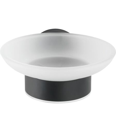 Wenko Portasapone da muro Bosio Black, Portasapone rotondo da fissare al muro, Acciaio inossidabile - vetro satinato, 11x5,5x13 cm, nero opaco -