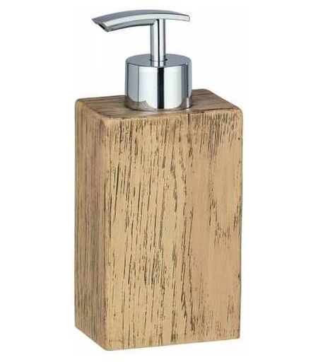 Wenko - Distributore di Sapone Liquido Marla, Capacità 350 ml, poliresina effetto legno, 7x16,5x5 cm, Marrone
