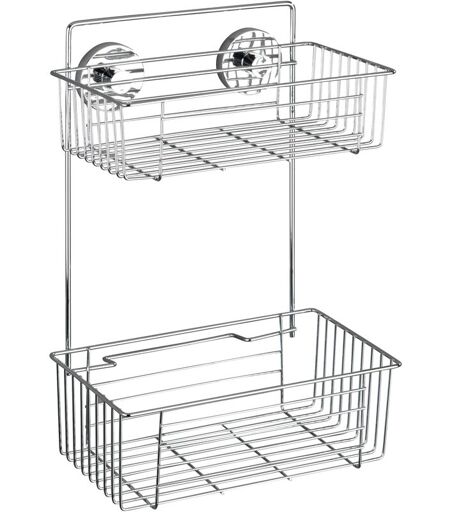 Wenko Mensola da muro per bagno senza foratura Bari, 2 cestelli per doccia, fissaggio senza foratura Vacuum-Loc®, riposizionabile senza lasciare tracce, in