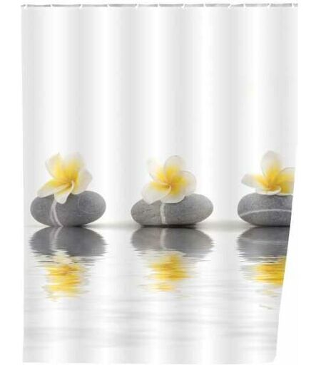 Wenko Tenda da doccia originale Stones Flower, Tenda da doccia 180x200 cm, lavabile in lavatrice e impermeabile, inclusi 12 anelli in plastica bianca, in