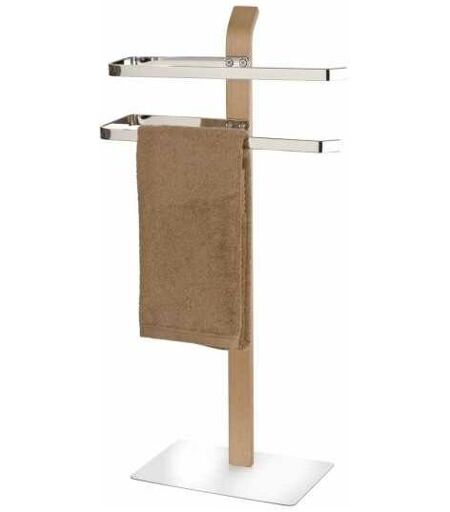 Wenko - Portasciugamani da bagno a terra, con 2 barre, Samona Nature, in acciaio e legno, 40,5x79,5x21,5 cm, cromato