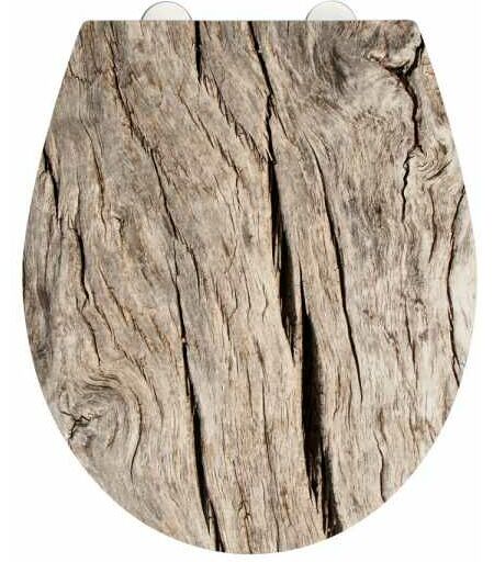 Wenko - Copriwater con freno di caduta, copriwater originale in legno con fissaggio in acciaio inossidabile, Duroplast, 39 x 45 cm, Multicolore