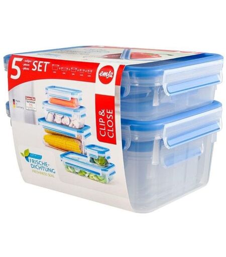 EMSA Clip & Close 017032512753 Contenitore Salvafreschezza, Set 5 Pezzi da 0.25/0.55/1.00/1.20/2.30 l -