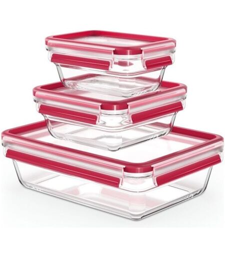 EMSA Clip&Close Set 3 Pentole rettangolari in vetro di polipropilene, igieniche, 100% prive di bpa, utilizzabili in freezer e microonde, lavabili in
