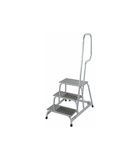Scaletta mobile per lavori di montaggio STABILO, 2 rotelle a supporto fisso, corrimano su un lato, 3 gradini. Fornitura = in parte smontato. Tipo di prodotto = scalette in alluminio. Profondità gradini = 240 mm. Larghezza gradini = 520 mm. Salita = su un lato. N. gradini, piattaforma inclusa = 3 pz. Altezza piattaforma = 600 mm. Larghezza piattaforma = 520 mm. Profondità piattaforma = 305 mm. Materiale telaio = alluminio. Materiale gradini = lamiera in alluminio, rigato. Colore telaio = alluminio. Altezza totale = 1550 mm. Profondità totale = 880 mm. Larghezza totale = 720 mm. Peso = 8.5 kg. Portata = 150 kg. Altezza di lavoro = 2600 mm. Sbraccio = 880 mm. Norma = EN 14183. Maggiore sicurezza grazie al corrimano. Due rotelle integrate e corrimano per un trasporto sicuro e comodo. Piattaforma superiore 520 x 305 mm per un appoggio sicuro. Scaletta in alluminio per lavori di montaggio mobile e leggera per impieghi industriali impegnativi, con gradini antiscivolo e corrimano. Grazie alla ...