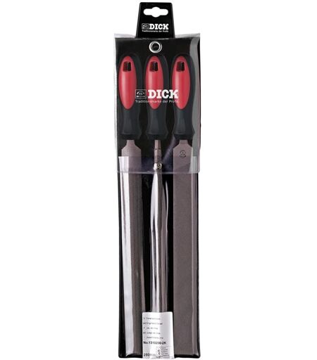 F. DICK 1310250-2K Set di 3 Lime da Officina, in Sacchetto di plastica con Manico a Due componenti, Nero/Rosso, 250 mm - F.dick