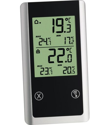 Temperatura esterna tramite trasmettitore senza fili - Visualizzazione della temperatura interna - Visualizzazione permanente della massima e minima temperatura - Retroilluminazione ...
