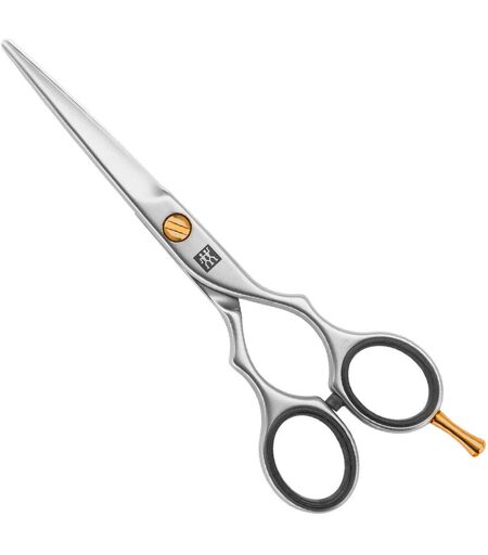 Queste forbici per capelli di qualità superiore, con comodi anelli per le dita e ganci per le dita rimovibili, hanno una micro-serratura di alta qualità per un taglio preciso. Le forbici per capelli sono dotate di affilatura a tazza nella lama e hanno un'azione liscia e non affaticante. Sono regolabili e disponibili con un gancio per le dita sostituibile. L'acciaio inossidabile con finitura satinata opaca e una finitura assolutamente precisa ed ergonomica rendono le forbici per capelli uno strumento durevole e confortevole per tagliare i capelli. ...