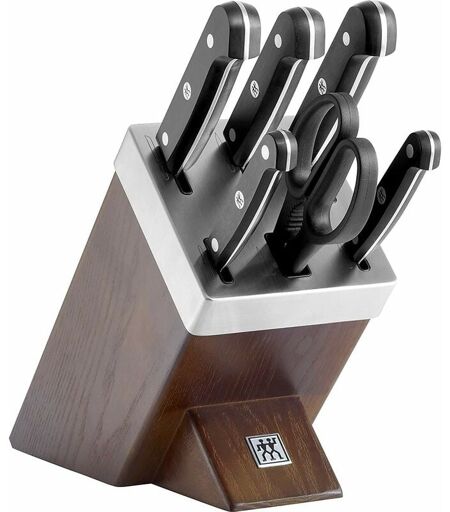 ZWILLING Ceppo di Coltelli Autoaffilante, 7 Pezzi, Ceppo in Legno, Coltelli e Forbici in Acciaio Inox/Impugnature in Plastica, Gourmet
