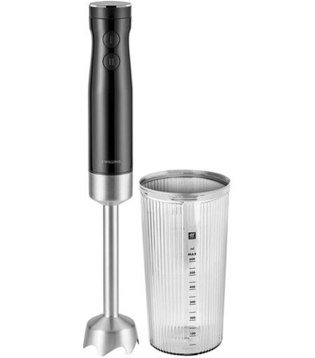 ZWILLING Enfinigy Frullatore a mano de acciaio inox, Lama per frullare de acciaio inox e caraffa dosatrice de 600 ml, Nero -
