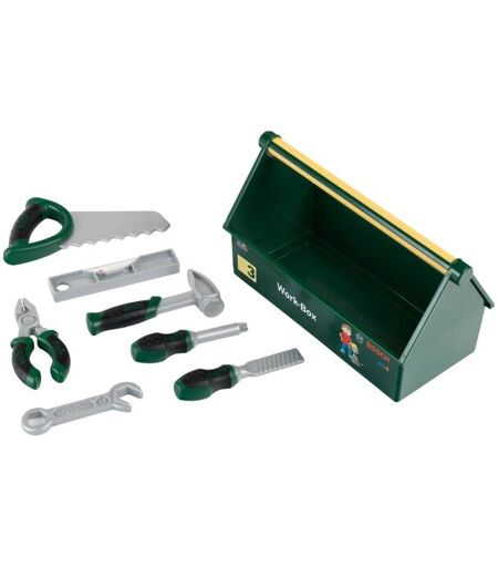 Cassetta degli attrezzi Bosch - Set di 7 pezzi - Robusta cassetta con pratica maniglia per il trasporto - Adatta ai sistemi di avvitamento Bosch e Technico Cassetta degli attrezzi con un'ampia gamma di accessori composta da Sega, cacciavite, lima, livella, pinze, martello e chiave inglese - Adatto per bambini a partire dai 3 anni di età ...
