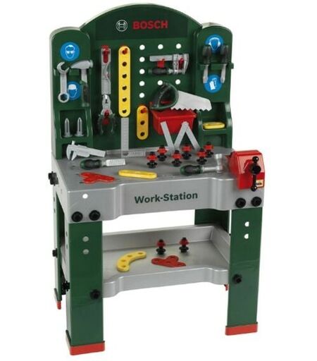 Questo Bosch Work Station Banco da Lavoro è 101 centimetri di pura felicità per tutti gli apprendisti del Bricolage! Questo set comprende un piano lavoro con morsa, una mensola di stoccaggio, ganci per appendere attrezzi , etc. Fornito con i nuovi strumenti Profiline in plastica robusta, resistente e dal design ultra-moderno : cacciavite, martello, chiave inglese, livella, pinze, sega, cricchetto, bulloni, metro falegname, viti, dadi e molto altro ancora. Molteplici possibilità di gioco rendono questo prodotto una vera chicca per i piccoli amanti del Fai Da Te e Aggiustatutto in erba. Scheda Tecnica Dimensioni : 60x21x(h)78cm Ideale dai 3 anni Peso: 5.5kg In plastica resistente Con tanti accessori ...