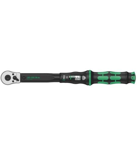 Chiave dinamometrica 1/2" 20-100 Nm WERA Click-Torque C 2 - Con attacco quadro 1/2", cricchetto reversibile, 45 denti - Facile regolazione e bloccaggio del valore desiderato, con click udibile e tattile al raggiungimento del valore di scala impostato - Meccanismo di sblocco udibile e tattile al raggiungimento del valore di coppia impostato - Campo di impostazione: 20-100 Nm; precisione ± 3% secondo DIN EN ISO 6789-1:2017-07 - Con impugnatura ergonomica bi-componente, adatta per il serraggio destrorso ...