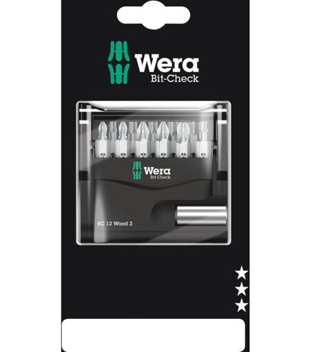 Wera Bit-Check 12 Wood 2 SB 05136391001 Kit inserti 12 parti 1/4 (6.3 mm) incl. porta inserti