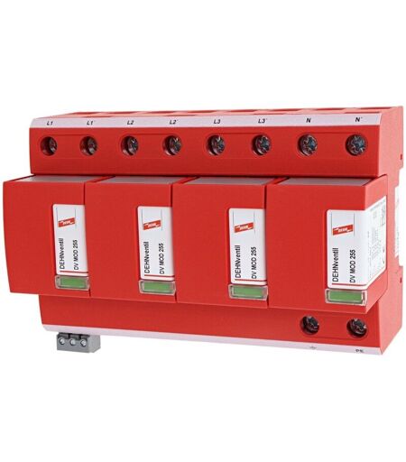 Tipo 1 + 2 - 25kA 3P+N con contatto pulito Questo limitatore di sovratensione è progettato per il modo neutro: TNS per edifici commerciali e industriali. Dehnventil. Scaricatore combinato di tipo 1 + tipo 2 basato su un traferro, pronto per il collegamento, comprendente una piastra di base e moduli di protezione a innesto, coordinato energeticamente con la gamma di prodotti Red/Line. ...