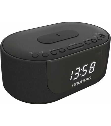 Radiosveglia digitaleGRUNDIG SCC 300 in nero con doppio allarme indipendente e funzioni snooze, sleep e dimmer, display LCD con LED bianco con 5 livelli di luminosità, caricatore induttivo wireless, connessione di ricarica USB, Bluetooth e radio FM. ...