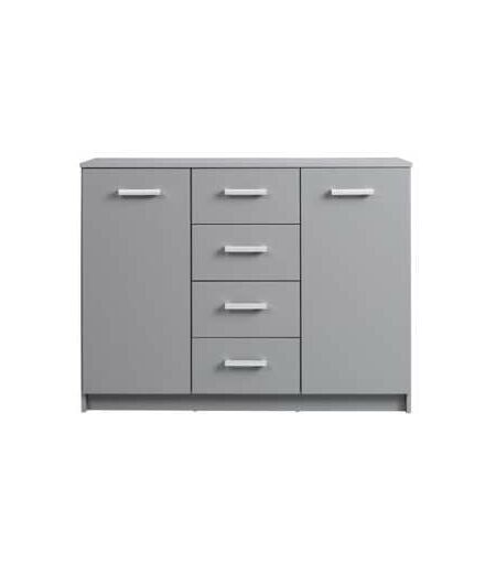 Inter Link - Buffet Con 2 Ante e 4 Cassetti In Laminato Grigio e Maniglie Color Metallo.