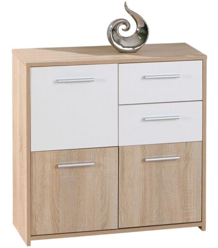 La credenza rifinita in bianco lucido e rovere porta un tocco di modernità ed eleganza in ogni ambiente, sia tradizionale che di tendenza. Dotata di due cassetti e tre nicchie, offre ampio spazio per riporre oggetti in modo ordinato, adattandosi a qualsiasi stanza della casa. Il design classico è valorizzato dalle maniglie argentate, che conferiscono un tocco sofisticato. Perfetta anche da abbinare agli altri pezzi della stessa linea, misura 77x30x77 cm. Caratteristiche del prodotto Colore Legno Materiale Truciolare Mobile Da assemblare Cassetti 2 Dimiensioni prodotto Larghezza: 0.77 m. Altezza: 0.77 m. Profondit: 30.0 cm. Peso: 23.05 Kg. Dimensioni Imballo Larghezza: 0.0 cm. ...