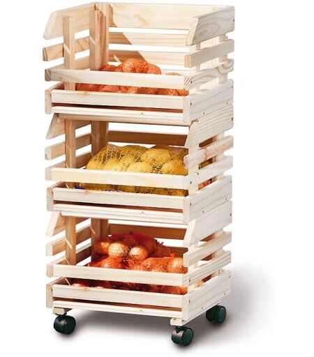 Non è sempre facile trovare il posto giusto per riporre frutta e verdura. Ma se ora non fosse più così difficile? E per di più con stile? Ecco un set di 3 ceste in legno sovrapponibili, con ruote alla base in modo da poterlo spostare agevolmente ovunque vuoi. Caratteristiche del prodotto Materiale Legno Colore Legno Dimiensioni prodotto Larghezza: 0.37 m. Altezza: 0.8 m. Profondit: 30.0 cm. Peso: 6.5 Kg. Dimensioni Imballo Larghezza: 0.0 cm. ...
