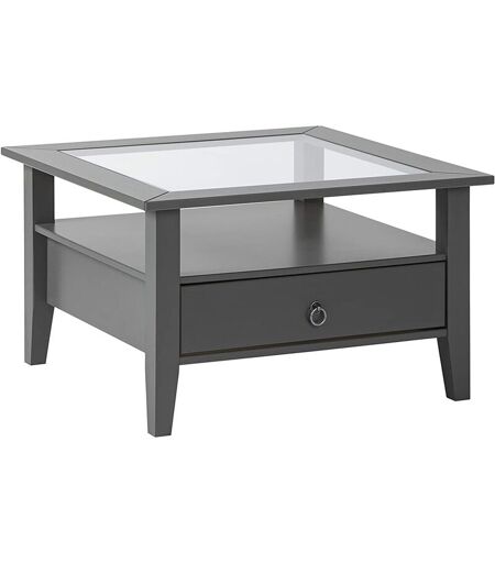Inter Link Tavolino provence 75x75x45H pino massello verniciato ad acqua grigio e top vetro temperato