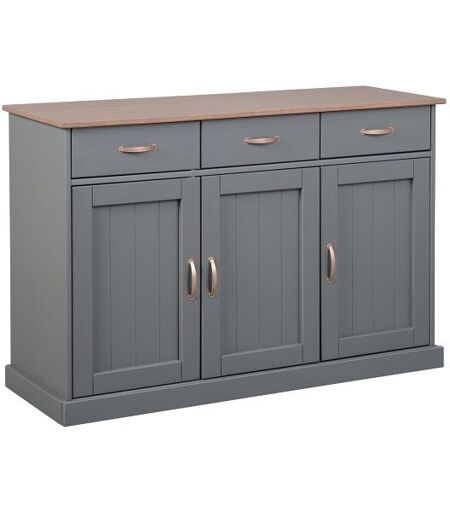 Inter Link - mobile soggiorno credenza buffet luzerna 3 ante + 3 cassetti 131x45x86H pino massello verniciato a acqua grigio e marrone seppia