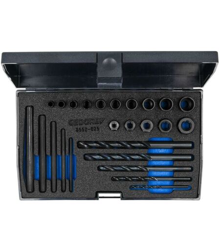 Per l'estrazione di viti e prigionieri spezzati, filettature M5 - M16, In pratica cassetta di plastica con punte a elica, bussole di guida, perni e madreviti, Dimensioni: 200 x 120 x 38 mm Larghezza totale [mm] 200 mm Conservazione Kunststoffkasten Peso netto [kg] 0,79 kg Peso del tessuto null Design null Certificato VDE Nein Dimensioni dell'imballaggio 1 Contenuto (numero di pezzi) 25 Contenuto null Adatto per Ausdrehen abgebrochener Schrauben und Gewindebolzen für Gewinde M5 - M16 Altezza totale [mm] 38 mm Elenco dei pezzi (testo) Ausdrehstifte Gr. 1" 2" 3" 4" 5" Bohrbüchsen Gr. 1" 2" 3" 4" 5" 6" 7" 8" 9" 10" Ausdrehmuttern 10" 11" 13" 14" 17 mm Bohrer 8,7-11/32" 8-5/16" 6,4-1/4" 4,8-3/16" 3,2-1/8" Lunghezza totale 120 mm ...