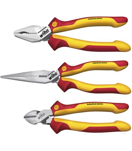 TOOLLAND Wiha Pinze set Industrial electric Pinza universale, pinza a becchi mezzitondi, tronchese, 3 pz. (38637)
