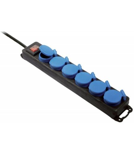 Presa di distribuzione 6 volte - IP44 a prova di splash - Coperchio pieghevole di sicurezza - Interruttore di on/off illuminato - Linea di tubi in gomma pesante 230 V 16 A - Adatto per fissaggio a parete - Adatto per cantieri commerciali e di costruzione ...