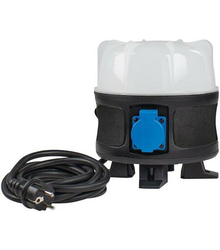 Faro rotante a LED Optiline mobile 360°. 30 W - Alloggiamento in ABS - Diffusore in policarbonato - Con cilindro antiurto in policarbonato - 1 presa con contatto di terra 230 V/16 A. IP 54 resistente agli spruzzi - Con tubo flessibile in gomma H07RN-F G1,5 da 3 m e spina di sicurezza - Interruttore on/off - Temperatura di colore 4000 K (bianco neutro) - Durata di vita dei LED circa 30000 h - Angolo del fascio luminoso dei LED 360° - Classe di protezione IP54 resistente alla polvere e agli spruzzi - Con gancio pieghevole per appenderlo sul lato inferiore ...