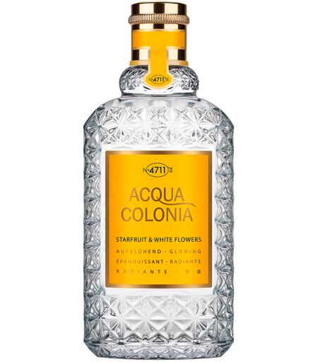 La nuova creazione di Acqua Colonia STARFRUIT & WHITE FLOWERS fa battere gli ormoni della felicità: gli accordi citrici del frutto della stella, luminosi e fioriti, si armonizzano con le sfumature dolci e fruttate dei fiori bianchi. La freschezza gialla del frutto della stella è stata ripresa nella confezione ed esprime sentimenti di felicità ed energia positiva. Questo sì che è un motivo per brillare! Note di testa: Frutto stella, fiori bianchi Applicazione: Spruzzare sulla pelle. Evitare il contatto con gli occhi. Una serie di eccezionali composizioni di colonia che invitano chi le indossa a momenti di benessere unici. ACQUA COLONIA è stata creata in collaborazione con profumieri di fama internazionale. Ingredienti selezionati dalla natura sono combinati in ricchi contrasti per creare una varietà di fragranze creative. La casa di profumi 4711 rappresenta l'origine dell'icona ECHT KÖLNISCH WASSER! Simboleggia l'artigianato e la creatività dell'arte della profumeria da oltre 225 anni. Con 4711 Acqua Colonia, il classico si reinventa. Ispirandosi alla natura, 4711 Acqua Colonia sviluppa eccezionali miscele di acque di colonia che hanno un impatto positivo sulle emozioni e sull'umore. La particolarità: ogni creazione di fragranze si concentra esclusivamente su due ingredienti contrastanti. Le composizioni sono note per il loro effetto aromaterapico e creano così momenti di benessere molto personali. ...