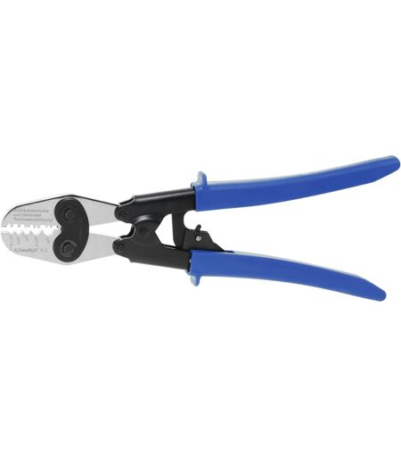Descrizione Esecuzione: Grazie alla trasmissione a leva, l'arresto forzato garantisce un serraggio affidabile e una pressione di contatto uniforme. Manici in lamiera di acciaio con rivestimento in PVC. Uso: Per capicorda e serrafili non isolati (esecuzione standard). Dati tecnici Esecuzione impugnatura rivestiti in plastica Tipo di prodotto Pinza di serraggio Lunghezza complessiva, mm 325 Per sezione del filo, mm2 0,75 - 16 ...