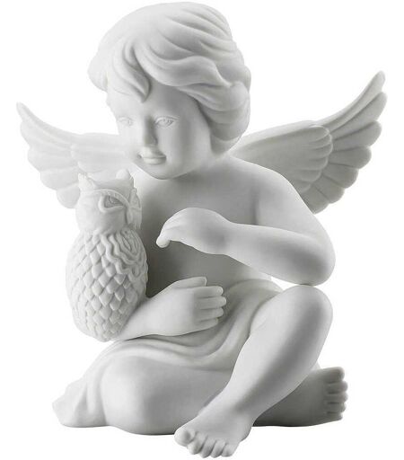 Figurina Di Rosenthal Della Collezione Engel Gross - Weiss Matt. Angelo Con Gufo In Porcellana Di Colore Bianco. Dimensioni: Lunghezza: 12,8 Cm; Larghezza: 12,4 Cm; Altezza: 14,5 Cm. La Referenza È 69056-000102-90528, Colore: Arancione, Azzurro, Beige, ...