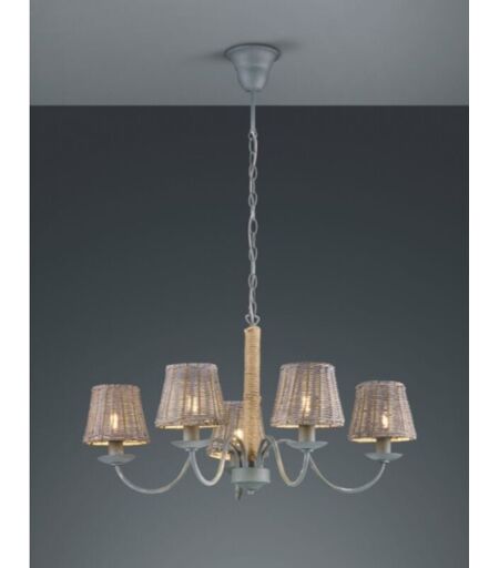 Trio - leuchten - lampadario rotin 5 lucigrigio con corda in juta e metallo
