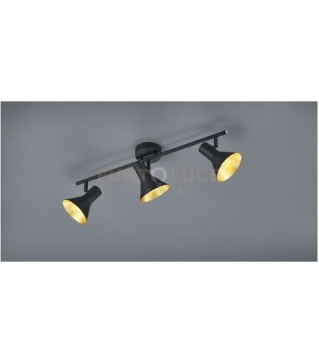 REALITY LEUCHTEN Nina Barra 3 Spots Attacco E14 Diffusori Metallo Nero + Oro 58cm