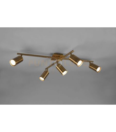 Trio Lighting Marley Plafoniera 2 Barre Orientabili 5 Spots Cilindro Metallo Ottone Anticat...