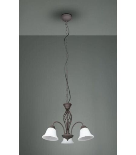 Trio Rustica lampadario metallo ruggine con 3 diffusori vetro bianco d. 50CM attacco E14