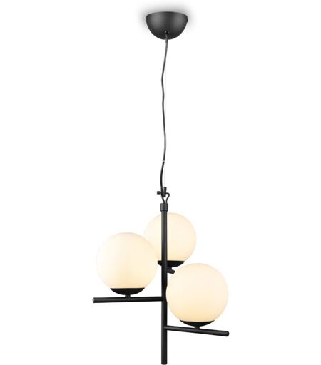 Trio - pure sospensione metallo colore nero con 3 sfere bianche d. 40CM attacco E14