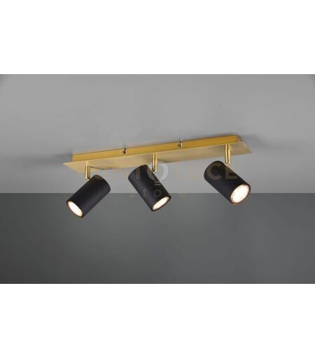 Trio Lighting Marley Barra Base Oro Con 3 Spots Cilindri Nero L. 48cm 3 Luci Attacco Gu10
