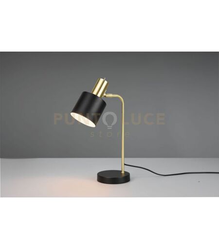 Trio Lighting Adam Lampada Da Tavolo Metallo Ottone Satinato E Nero H. 43,5cm 1 Luce Attacc...
