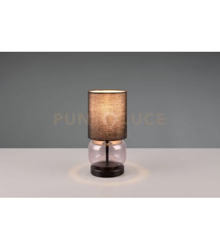 Trio Lighting Elio Lampada Da Tavolo Base Vetro Fume' Con Paralume Nero H. 29cm 1 Luce Atta...