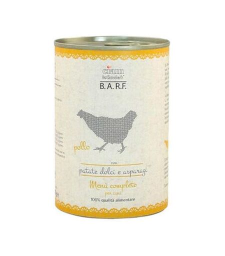 Trito Di Pollo Con Patate Dolci E Asparagi Dr.Clauder's Barf menu completo cane trito di pollo con patate dolci e asparagi. Composizione Sottoprodotti di origine animale: Pollo (cuore, muscolo, fegato, stomaco e collo) (80%), carote (5%), asparagi (5%), patate dolci (5%), amaranto (3%), sostanze minerali (1%), olio di pesce (olio di fegato di merluzzo) (0,5 %), olio vegetale (olio di germe di grano) (0,5%). Componenti analitici Umidità: 77% Proteina greggia: 10,20% Grassi greggi: 6,20% Fibra greggia: 0,60% Ceneri gregge: 2% Additivi nutrizionali Vitamine, provitamine e sostanze ad effetto analogo chimicamente ben definite: 3a672a Vitami-na A 5.000 UI/kg, 3a671 Vitamina D 500 UI/kg, 3a700 Vitamina E 11,7 mg/kg. Additivi tecnologici E499 Cassia 2.400mg/kg (completamente vegetale, ottenuta da Cassia tora). Patate dolci Elevato contenuto energetico (amido) Ricche di fibra Asparago Antiossidante Fibra prebiotica Carota Elevato contenuto di carotene, potassio Fibra ...