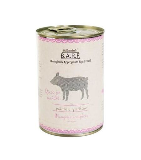 Barf Menu Completo Cibo Umido Trito Di Maiale Con Patate E Zucchine Per Cani Lattina 400g