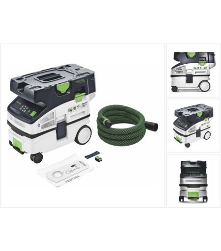 Contenuto della confezione: - 1 aspirapolvere a batteria Festool CTLC MINI - 1x Filtro principale ad alte prestazioni - 1x Sacchetto filtro autopulente (SC-FIS-CT) - 1x Tubo di aspirazione (D 27/32x3,5m-AS/CTR) - 1x Telecomando (CT-F I) - senza batteria, senza caricabatterie Descrizione del prodotto: Festool offre l'aspirapolvere a batteria CTLC MINI con una potenza di aspirazione paragonabile a quella di un aspirapolvere a filo, con una tensione di 36V erogata da 2 batterie da 18V. Può essere pulito manualmente per ripristinare la potenza di aspirazione e riempire al massimo il sacchetto del filtro. Ha una categoria di polvere L per condizioni di lavoro più sane. Questa macchina è inoltre dotata di un dispositivo di montaggio T-LOC Systainer, che consente di fissare l'aspirapolvere a un Systainer e di tenerlo sempre a portata di mano. La potenza di aspirazione può essere regolata su 3 diversi livelli. Inoltre, grazie alla funzione Bluetooth, è possibile controllare l'aspirapolvere a ...
