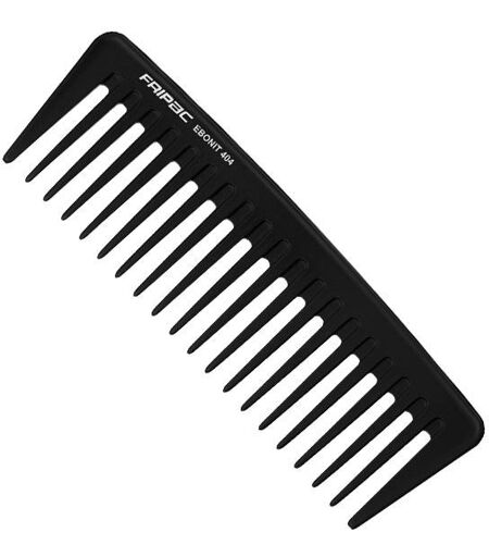 I pettini in ebanite di Fripac sono fatti a mano con gomma naturale di alta qualità. Il complesso processo di vulcanizzazione produce un materiale estremamente robusto ed elastico: l'ebanite, il materiale perfetto per il professionista esigente. Elastica e molto stabile con denti perfettamente arrotondati e senza bave. Delicato sui capelli e sul cuoio capelluto, resistente al calore e ai prodotti chimici. Lunghezza del pettine 18 cm. ...
