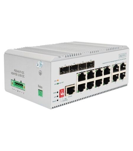 Digitus Switch PoE di rete Gigabit Ethernet a 8 porte, industriale, gestito L2, 4 Uplink SFP (DN-651139)