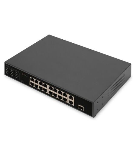 Digitus Switch PoE 16 porte FE 2 porte uplink GE (SFP / RJ45), Non gestito, Gigabit Ethernet (10/100/1000), Full duplex, Supporto Power over Ethernet (PoE), Montaggio rack, 1U ...