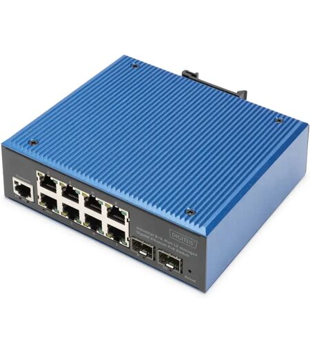 Digitus Switch industriale Gigabit Ethernet PoE gestito a 8+2 porte L2. Tipo interruttore: Gestito, Livello del commutatore: L2. Tipo di porte RJ-45: Gigabit Ethernet (10/100/1000), Quantità di porte RJ-45: 8, Quantità di moduli SFP installati: 2. Full ...