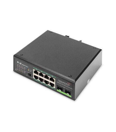 Digitus Switch Gigabit PoE+ di livello industriale a 8 porte con 2 porte uplink SFP, Non gestito, Gigabit Ethernet (10/100/1000), Supporto Power over Ethernet (PoE) ...
