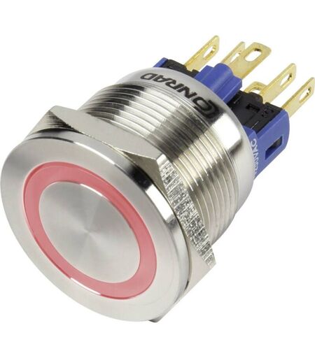 TRU Components 1303040 GQ22S-11E/R/12V Pulsante antivandalo 250 v/ac 3 a 1x Off / (On) Momentaneo Rosso IP65 1 pz. -