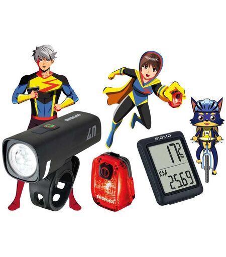 Sigma Sport Set Di Luci Aura 0/hiro 10/bc 5.0 Wr Ride Safe To School Black / Red